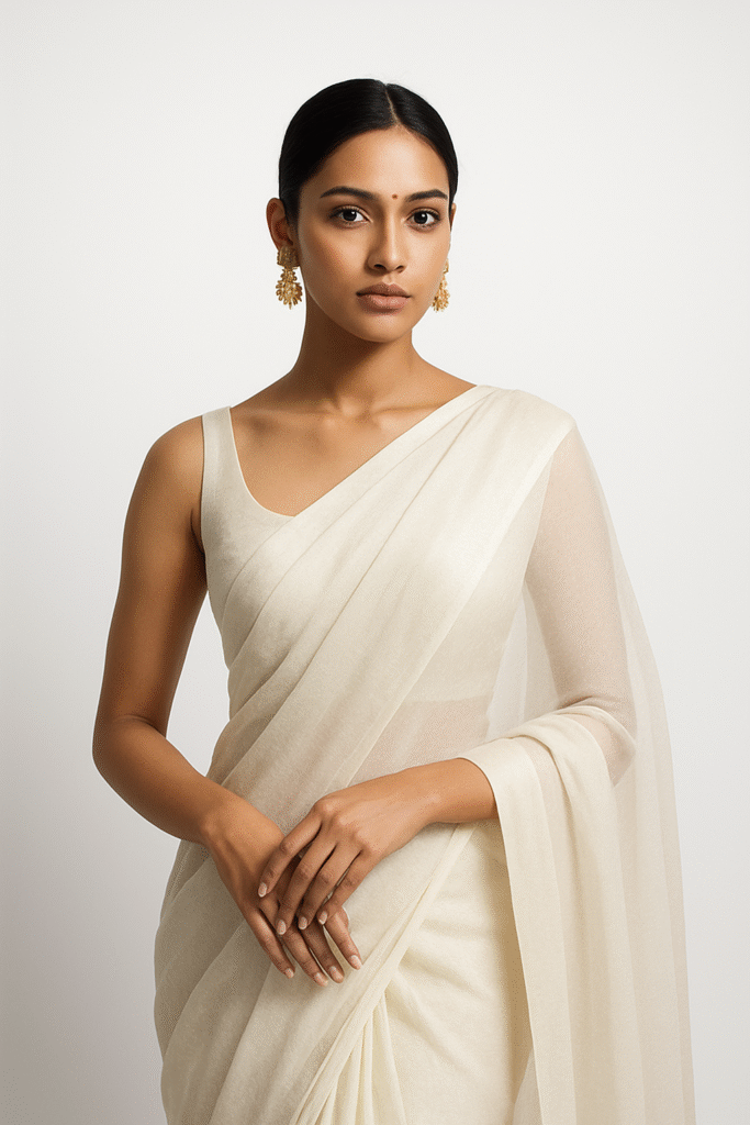 ⭐ H2: 6. Minimalistic Fashion Magazine Saree Portrait