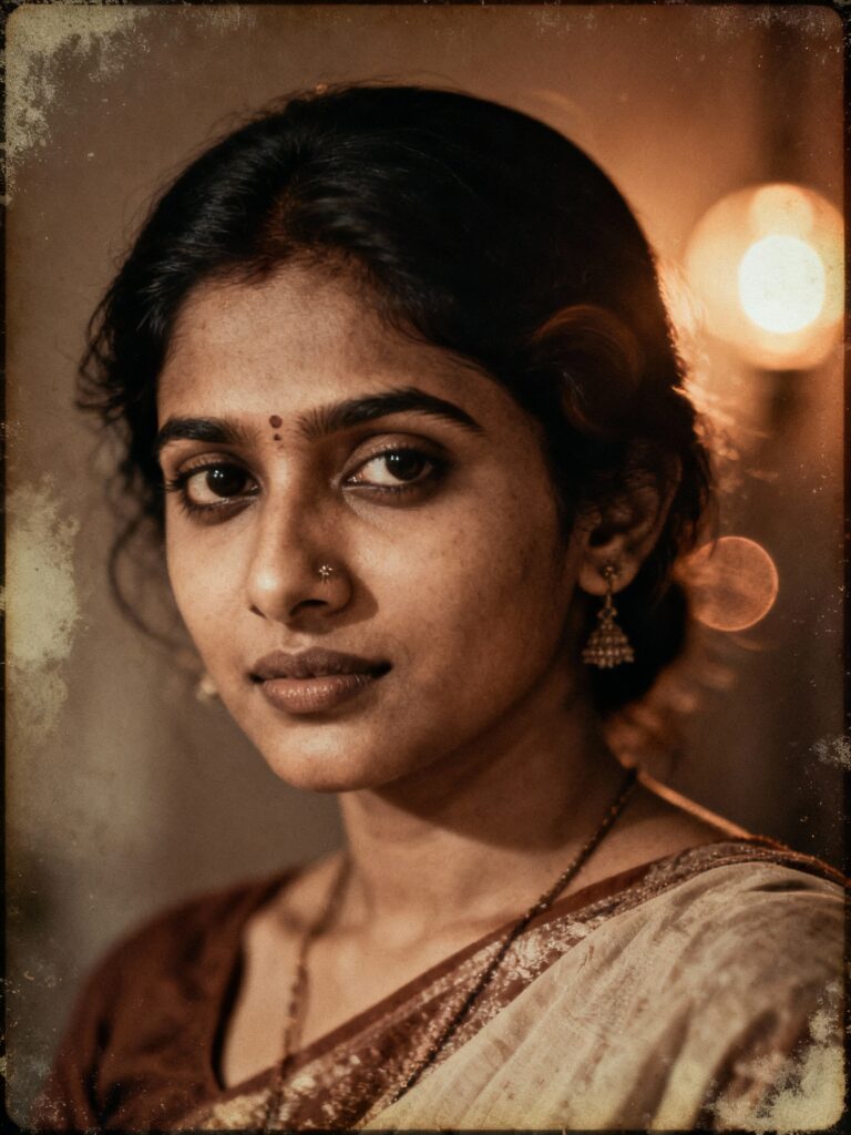 “Create a vintage film-style portrait with warm grain, muted tones, subtle blur, retro lighting, and nostalgic atmosphere. Use analog color grading and soft edges for a dreamy, viral-ready Instagram aesthetic inspired by classic 90s film visuals.”