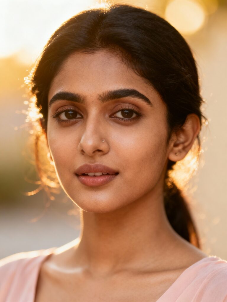 “Create an ultra-aesthetic Instagram-ready portrait with soft golden light, smooth skin glow, pastel tones, blurry background, creamy highlights, subtle grain, warm shadows, and cinematic framing. Add gentle bokeh for a dreamy viral look. Aim for a clean, minimal, trendy 2026 vibe with perfectly balanced warm tones indian”